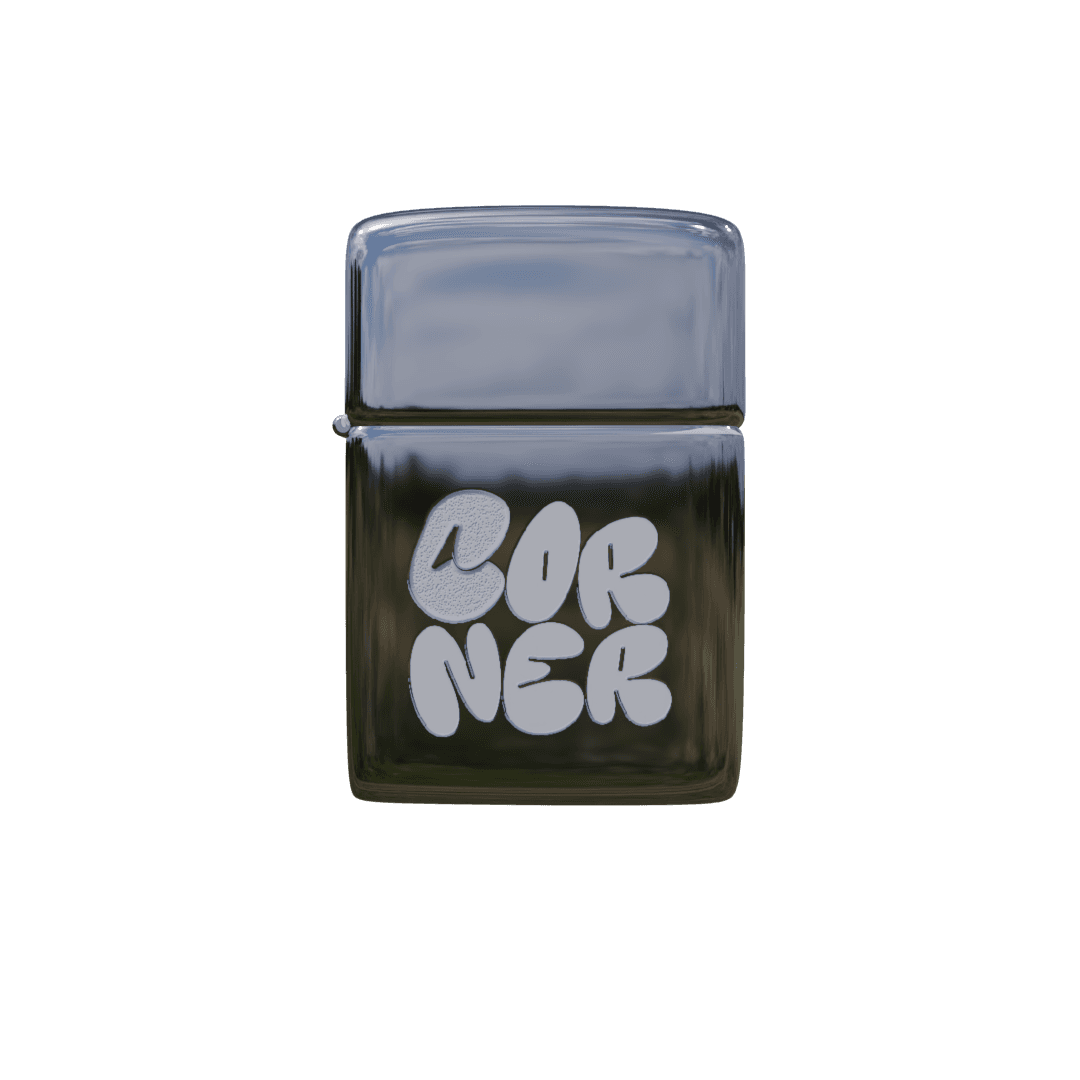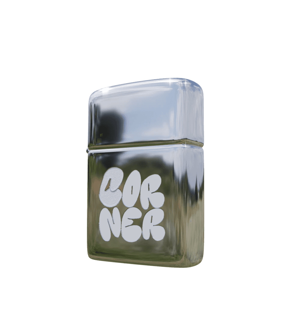 Classic high polish chrome Zippo lighter with Corner logo laser engraved.